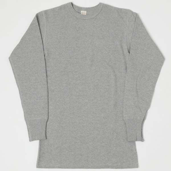 Warehouse 5903 Ls Waffle Knit Crew Neck Tee Heather Grey Son Of A Stag